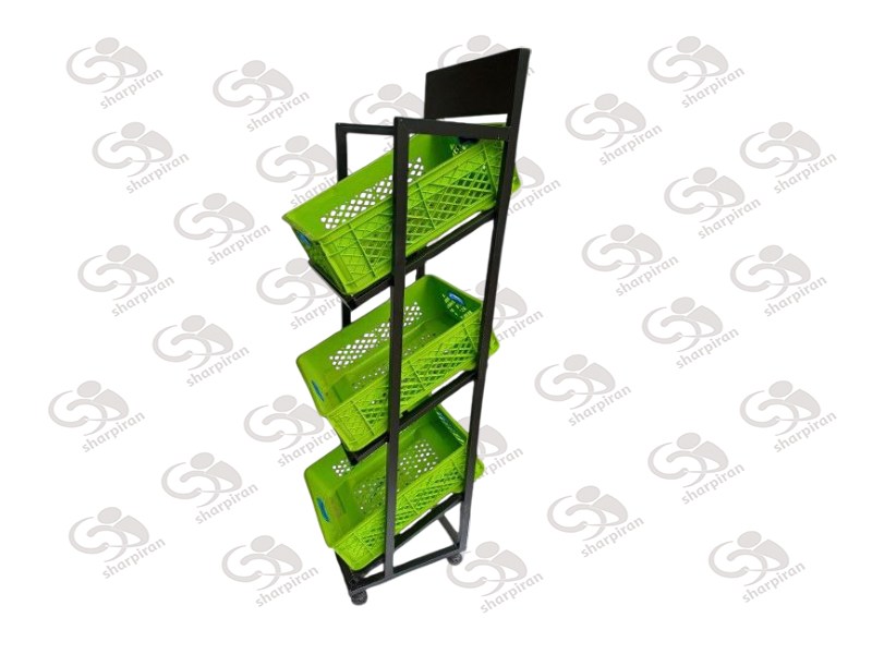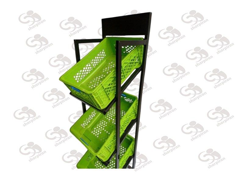 این استند دارای 3 طیقه می باشد و که هر طبقه 1 سبد میوه دارد. جنس خود استند آهنی و جنس سبدهای داخل آن پلاستیکی می باشد.